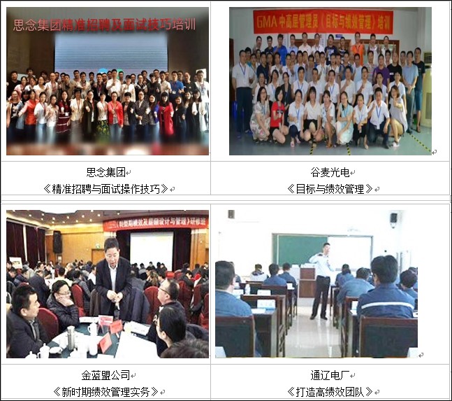 以績(jī)效管理為主題的公開(kāi)課進(jìn)行超過(guò)60天,在濟(jì)南、煙臺(tái)、青島、南京、石家莊舉辦5次上百人公開(kāi)課,給蘭石重裝、寧波華翔、鳳凰自行車(chē)、昊方機(jī)電(汽車(chē)空調(diào)離合器第一公司)、谷麥光電、海泰汽車(chē)等上市公司及國(guó)內(nèi)知名企業(yè)進(jìn)行以績(jī)效管理為主的系列課程培訓(xùn)。